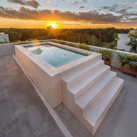 Además de acceso a parajes naturales como el Parque Dos Aguas, a 2 km, la villa Bright 2Br In Aldea Zama With Rooftop Pool & Wi-Fi Tulum ofrece unas piscinas exteriores.